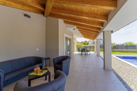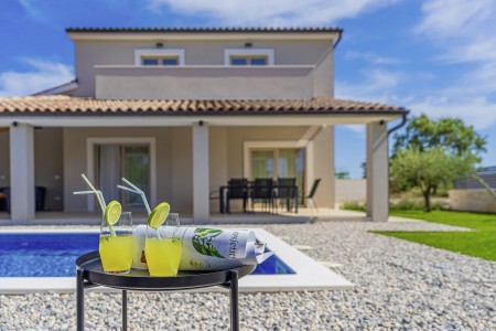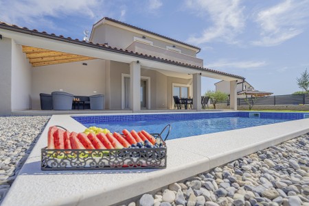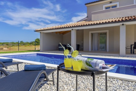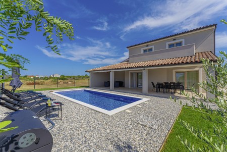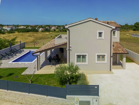 Moderna villa s tri spavaće sobe, nedavno dovršena, nalazi se nedaleko od sela Loborika, samo 7 km od Pule i 12 km od najbliže plaže. Kuća, kao i vrt s roštiljem, vanjskim tušem, ležaljkama i privatnim bazenom (3,8 x 8 m), stoje samo Vama na raspolaganju. Povijesni centar grada Pule udaljen je samo nekoliko minuta vožnje automobilom i svakako ga vrijedi posjetiti. Najpoznatiji spomenik i simbol grada je impresivna Arena, amfiteatar iz rimskog doba, koji se ne može samo razgledati, već se koristi i kao jedinstvena pozornica na otvorenom za koncerte i filmske priredbe.