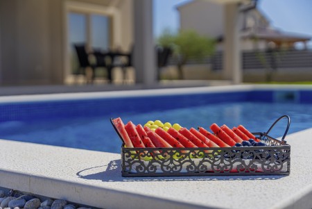 Ostalo: Besplatan WiFi internet. Roštilj, vanjski tuš i ležaljke dostupni su uz bazen. Parking na parceli. Objekt nije pogodan za grupe mladih.
