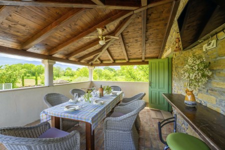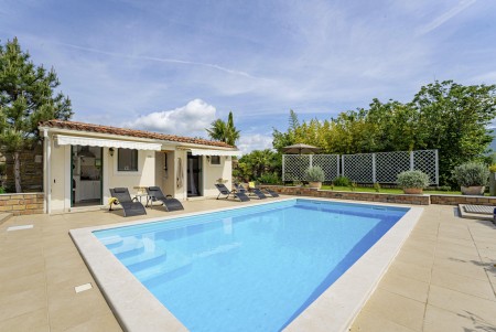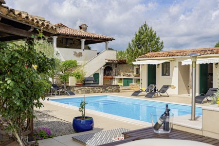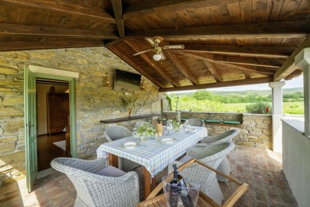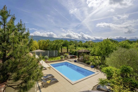 Šarmantna kamena villa smještena je u Zatka Čepiću, vrlo mirnom selu koje pripada općini Kršan. Okružena zelenilom prelijepog krajolika s prostranim poljima, livadama i šumama, na ovom mjestu može se provesti vrlo ugodan i miran odmor. Osim privatnog bazena (4 x 7,5 m) sa sunčalištem i ležaljkama, njegovan vanjski prostor nudi i prostor za roštiljanje te potpuno opremljenu ljetnu kuhinju, kao i jacuzzi. Kuća, uređena s puno pažnje prema detaljima, odiše toplinom i pruža jedinstven pogled na Park prirode Učka i 35 metara visok zvonik iz 17. stoljeća koji je smješten na jednom brežuljku. Vrijedi spomenuti da dragocjeni bijeli tartuf potječe iz šuma oko Zatka Čepića. Ovaj specijalitet koji se cijeni ne samo u Francuskoj i Italiji, nego i u Istri, možete kušati upravo na ovom području. Okruženje u kojem se villa nalazi idealno je za pješačenje i otkrivanje novih vidika, a pogotovo onima koji se odvaže popeti se na najviši vrh, Učku. Oni će biti nagrađeni pogledom od kojega zastaje dah! Oni koji ipak najviše vole morsku obalu neće biti uskraćeni, jer je najbliža plaža imenom „Copacabana“ koja se nalazi ispod gradića Plomin udaljena samo 10-15 minuta vožnje autom. Poznatije plaže u Rapcu nalaze se na udaljenosti od oko 20 km.