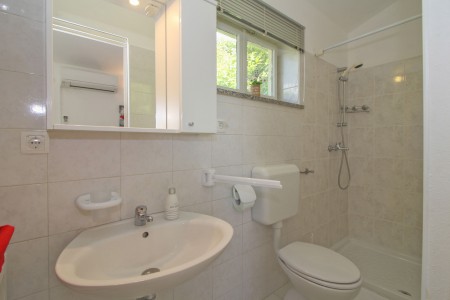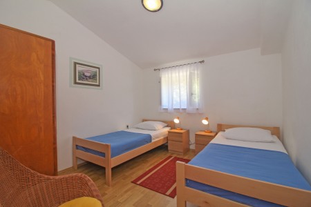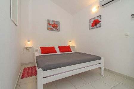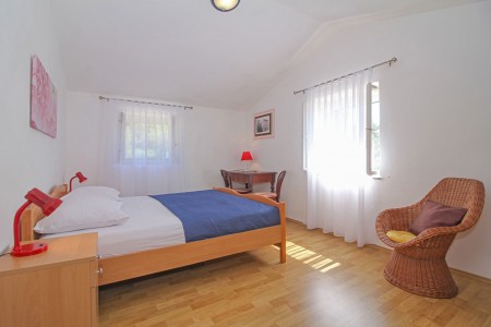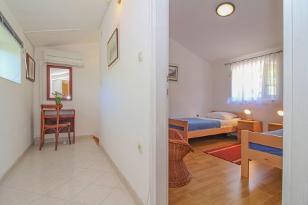 Kuća za 6-7 osoba: ukupne površine 91 m² (glavna i pomoćna kućica). Glavna kuća ima 70 m² na dvije etaže. U prizemlju se nalazi dnevni boravak sa kaučom gdje može spavati dijete do 14,99 godina, kuhinja sa stolom za objedovanje i jedna kupaonica (tuš/WC). Na prvom katu su dvije spavaće sobe, jedna sa bračnim krevetom a druga sa dva kreveta za jednu osobu. Klima uređaj je na hodniku (hladi obje sobe kod otvorenih vrata). Pomoćna kućica ima 21 m² i sastoji se od jedne prostorije sa bračnim krevetom, klimom, kuhinjskom nišom i stolom kao i kupaonice (tuš/WC).