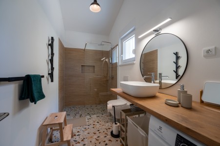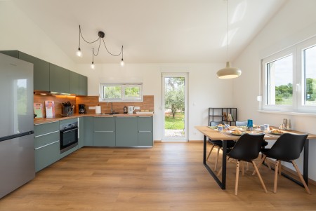 Oko petnaest minuta hoda od Medulina nalazi se samostojeća kućica za maksimalno 4 osobe. U vanjskom dijelu očekuje Vas njegovano dvorište s terasom, privatnim montažnim bazenom (7,3 x 3,6 m, dubine 1,20–1,25 m), ležaljkama za sunčanje i roštiljem. Opremljena svim sadržajima za ugodan boravak, ova je kuća idealna za sve koji žele provesti odmor na pogodnoj lokaciji, dok su plaža i živahna obalna mjesta lako dostupna. Najbliža plaža udaljena je oko 900 metara, dok se pješčana plaža „Bijeca“ nalazi na otprilike 2,5 kilometra udaljenosti. Do centra Medulina je oko 1 kilometar. Poznati obalni grad Pula udaljen je samo 8 kilometara i svakako ga vrijedi posjetiti. Najpoznatiji spomenik i simbol grada je impresivna Arena, rimski amfiteatar koji se može razgledati, a također služi i kao jedinstvena pozornica na otvorenom za koncerte i filmske projekcije. Cijela kuća, zajedno s dvorištem i bazenom, stoji samo Vama na raspolaganju.