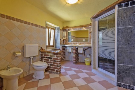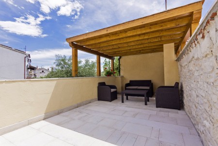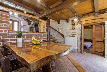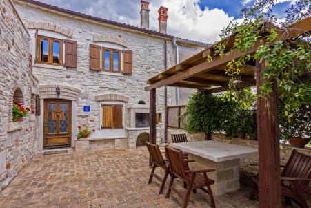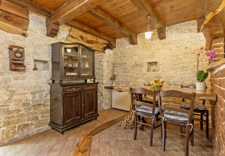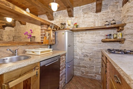Tipična istarska seoska kuća u nizu, gradnje kakva je bila uobičajena u prošlosti u selima. Kako bi uštedili na kamenu i tadašnjim materijalima za građenje, ljudi su kuće zidali u nizovima, a pri tome su pomagali jedni drugima i njegovali dobrosusjedske odnose. Kuća je kompletno renovirana, sačuvana je njezina izvornost u uređenju iako je prilagođena modernom načinu života. Vaši domaćini žive u istom selu i pomoći će Vam da se snađete prvi dan dolaska tako da će Vam objasniti gdje ćete naći sve što Vam bude trebalo. Najpoznatije turističko mjesto Medulin, sa svojom pješčanom plažom i raznim sadržajima za razonodu, udaljeno je samo 2 km.