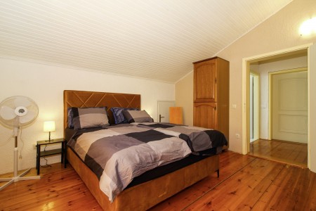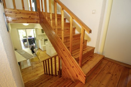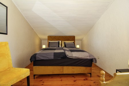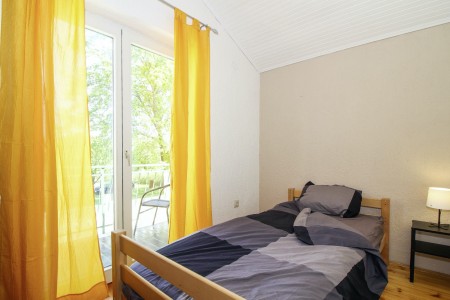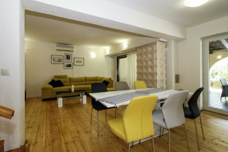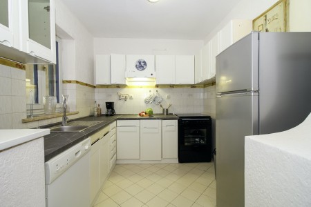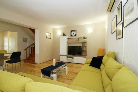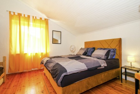 Kuća za 7-9 osoba: ca. 130 m², na tri etaže. U prizemlju se nalazi potpuno opremljena kuhinja s klima uređajem, dnevni boravak s blagovaonicom i klima uređajem te zaseban WC. Na prvom katu nalaze se jedna spavaća soba s krevetom na kat i balkonom, jedna spavaća soba s jednim krevetom i balkonom te kupaonica (kada/WC). Na drugom katu nalaze se dvije spavaće sobe, svaka s bračnim krevetom i jednim dodatnim krevetom za jednu osobu, te kupaonica (kada/WC).