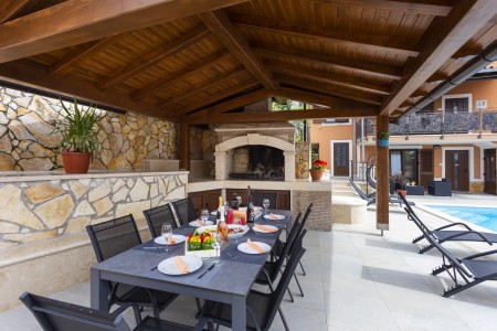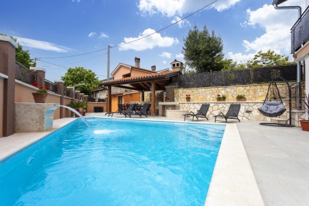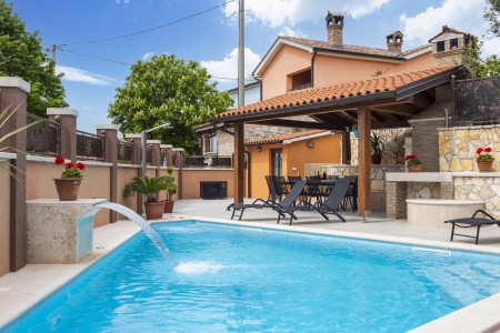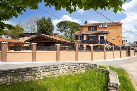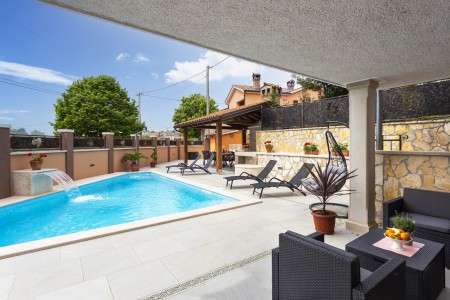 Renovirana i kompletno novo uređena i namještena villa za odmor nalazi se u mjestu Kaštelir-Labinci, tako reći predgrađu Poreča, a samo 7 km udaljeno od najbliže plaže. Osim bezbrojnih lijepih plaža i uvala, Poreč nudi svojim posjetiteljima i zanimljiv stari grad kao i mnoge mogućnosti za kupovinu, razonodu, razgledavanje spomenika povijesti i kulture, kao i bezbrojne sportske sadržaje u prirodi. Okolica mjesta Kaštelir-Labinci može se obilaziti i pješice ili biciklom. Posebnost je biciklistička staza „Parenzana“ koja vodi povijesnom jednotračnom prugom od Vižinade preko Motovuna do Umaga na sjeveru poluotoka. No, ovdje će vrlo ugodno biti i onima koji se žele zaista odmarati i ne raditi ništa. U ovoj modernoj villi za odmor sa tri spavaće sobe i dvorištem koje je sakriveno od vanjskih pogleda, sa terasom, roštiljem, sunčalištem i grijanim bazenom (5 x 7 m) sa hidromasažom, ništa vam neće zafaliti.