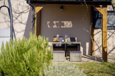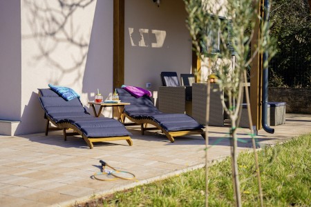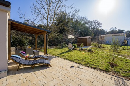Moderno uređena kućica na velikoj privatnoj parceli (1100 m²), samo 600 m od plaže i 4 km od Pule