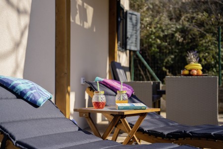Ostalo: Besplatan WiFi internet. Terasa s vrtnim namještajem, ležaljkama, suncobranom i roštiljem na raspolaganju u potpuno ograđenom vrtu. Besplatan privatni parking na parceli.