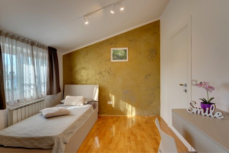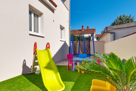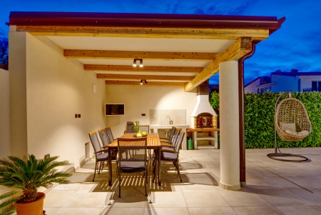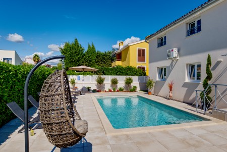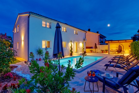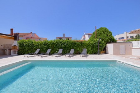 Ova moderna, samostojeća villa s četiri spavaće sobe smještena je u Štinjanu, mirnom predgrađu Pule, na samo 850 m od najbliže plaže i 3 km od povijesnog centra grada. Pula nudi brojne znamenitosti, restorane, mogućnosti za zabavu i kupovinu. Najpoznatiji simbol grada je impozantna Arena, rimski amfiteatar koji se može razgledati, a ljeti služi i kao jedinstvena pozornica na otvorenom za koncerte i filmske projekcije. U blizini je ribarsko mjesto Fažana, odakle polaze izletnički brodovi prema Nacionalnom parku Brijuni, destinaciji koju vrijedi posjetiti. Villa pruža sve potrebno za udoban boravak: četiri spavaće sobe, uređenu okućnicu s privatnim bazenom (4 x 7 m), sunčanom terasom, udobnim ležaljkama i prostorom za roštilj. Za najmlađe tu je dječji kutak s trampolinom, ljuljačkom, toboganom i penjalicom. Restorani i trgovine nalaze se na pješačkoj udaljenosti.