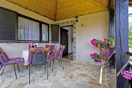Kuća za odmor s tri udobne spavaće sobe i lijepo uređenom okućnicom s vrtom nalazi se u mjestu Poljanak, samo 6 km od ulaza u Nacionalni park. Do restorana i trgovina može se doći automobilom za samo nekoliko minuta.