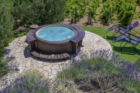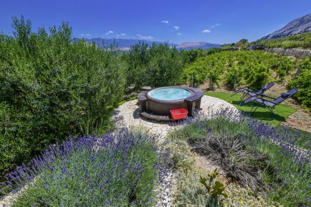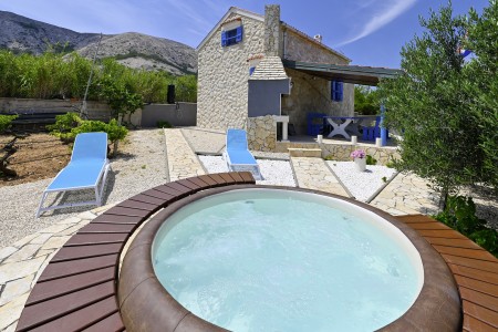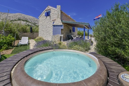 Kuća za odmor Marianna smještena je na prirodnoj parceli površine 2300 m² na istočnoj strani otoka Paga. Na potpunoj osami, okružena vinogradima, poljima i maslinicima, ova šarmantna kamena kućica nalazi se usred zelenog raja s prekrasnim pogledom na more. Kuća i veliko ograđeno dvorište na kojem je smješten jacuzzi, vanjski tuš i ležaljke, samo su Vama na raspolaganju, pružajući potpunu privatnost i mir – najbliži susjedi udaljeni su 200 m. Romantična divlja plaža koja pripada imanju, udaljena je samo 90 metara od kuće. Do trgovine i restorana može se doći za nekoliko minuta vožnje automobilom.
