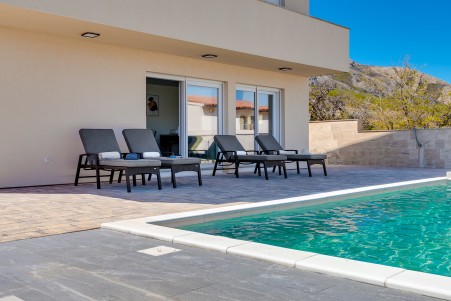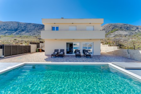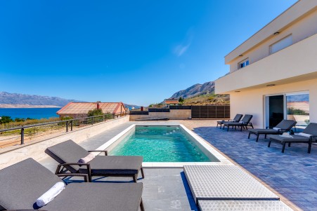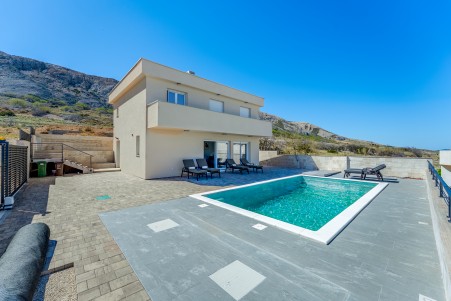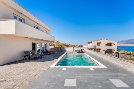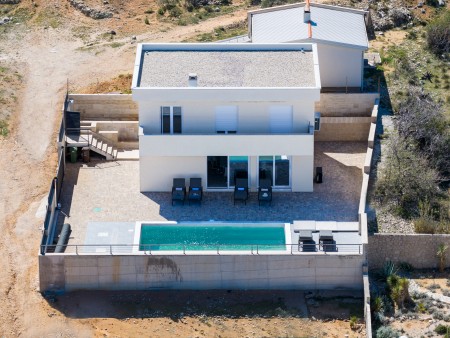 Samostojeća kuća s 3 spavaće sobe, bazenom i pogledom na more na otoku Pagu, samo 250 m od plaže