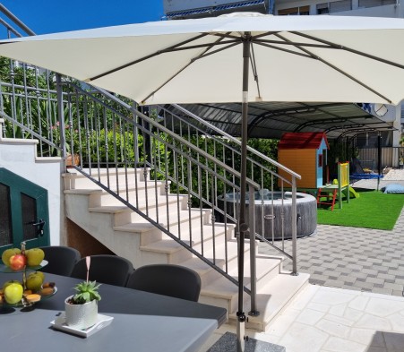 Ostalo: Besplatan WiFi internet. U dvorištu se nalaze trampolin, tobogan i ljuljačka za djecu, dok jacuzzi na napuhavanje, tuš te stol sa stolicama pružaju dodatne mogućnosti za opuštanje. Parking za 3 automobila unutar parcele.