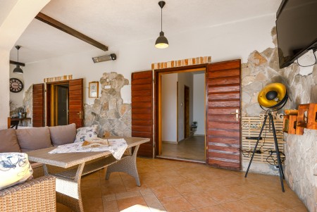 Ostalo: Besplatan WiFi internet. Parking unutar parcele za do 10 automobila. U jesenskom razdoblju, ako želite, možete sudjelovati u berbi maslina. Kod Vašeg domaćina je također moguće kupiti domaće proizvode – maslinovo ulje. Za zabavu su na raspolaganju stolni nogomet u kući, a u vanjskom dijelu stolni tenis i badminton mreža. Grupe mladih su u ovoj kući dobrodošle.