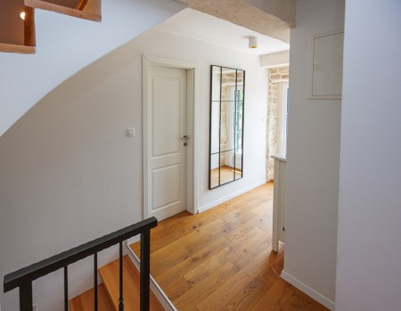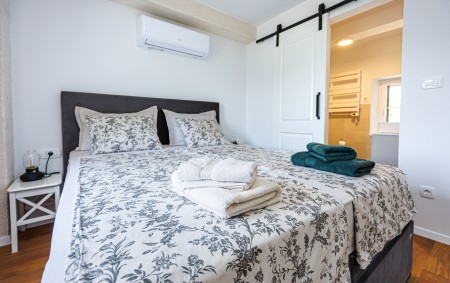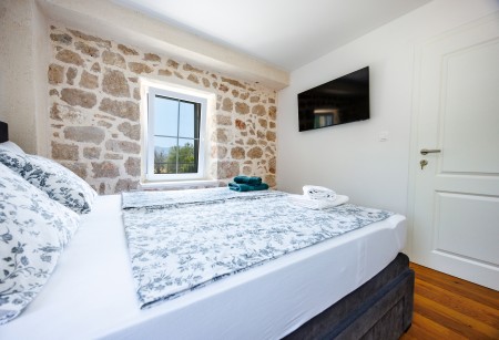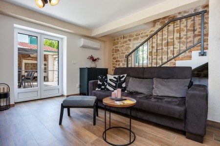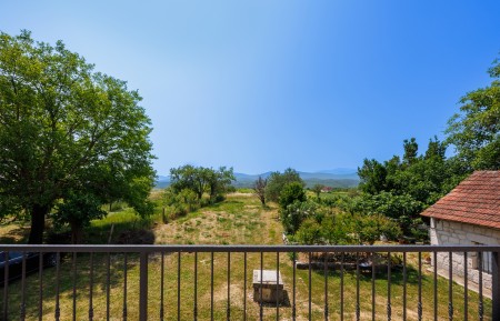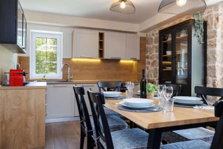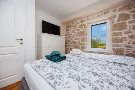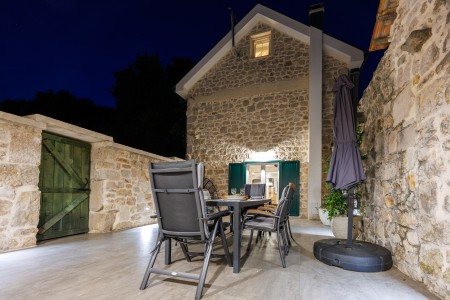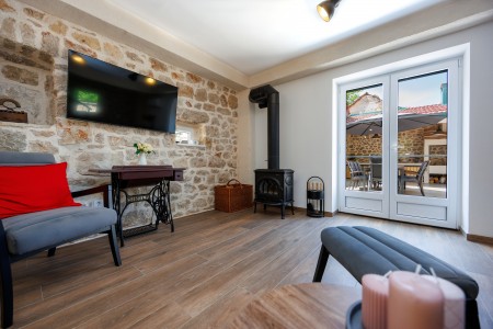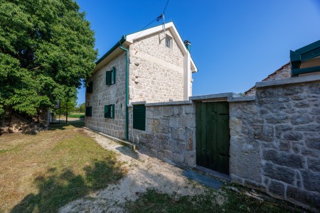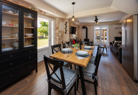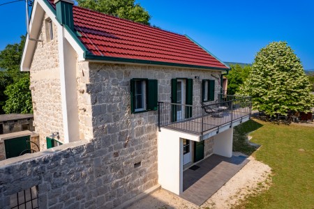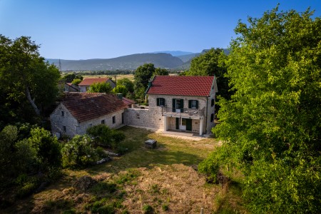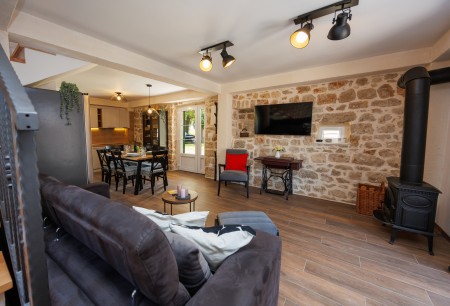 Ova kamena kuća smještena je u mjestu Donji Proložac, u dalmatinskom zaleđu, svega oko 6 km od grada Imotskog. Okružena poljima, vinogradima i blagim brežuljcima, idealna je za sve koji traže mir i opuštenu atmosferu daleko od turističke vreve. Ipak, more nije daleko – poznate plaže u Baškoj Vodi i Brelima udaljene su otprilike 35 km i lako dostupne automobilom, što ih čini odličnim izborom za jednodnevni izlet. U okolici se nalaze Modro i Crveno jezero, rijeka Vrljika, kao i brojne staze za šetnju i vožnju biciklom. Najbliža trgovina udaljena je oko 4 km, a restoran se nalazi na otprilike 6 km udaljenosti. Uz pažljivo uređenu unutrašnjost s tri spavaće sobe, gostima su na raspolaganju terasa s blagovaonskim prostorom na otvorenom te natkrivena ljetna kuhinja s umivaonikom i roštiljem.