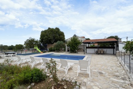 Samostojeća villa s 2 spavaće sobe na zemljištu površine 1000 m2, dječjim igralištem i natkrivenom terasom s roštiljem