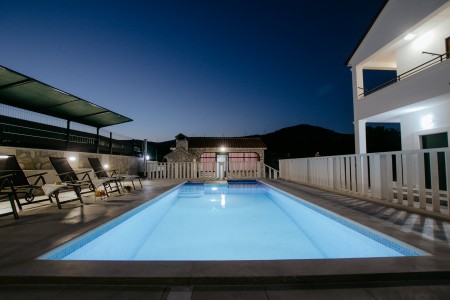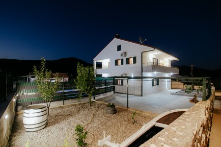 Komforna villa s pet spavaćih soba smještena je u selu Vrsine, svega 1,5 km od obale s brojnim plažama koje nude kristalno čisto more, ugodnu atmosferu i razne sadržaje za opuštanje i zabavu. Selo se nalazi u blizini dva grada koja su pod zaštitom UNESCO-a –Trogira (ca. 9 km) i Splita (ca. 36 km). Na potpuno ograđenoj parceli nalazi se kućica uz bazen s rustikalnom ljetnom kuhinjom, opremljena kuhinjskom nišom, stolom i klupama, te roštiljem u vrtu. Osim toga, na raspolaganju Vam je i privatni bazen (3 x 8 m) s terasom za sunčanje i ležaljkama. Najbliža trgovina i restoran udaljeni su oko 300 m od ville.