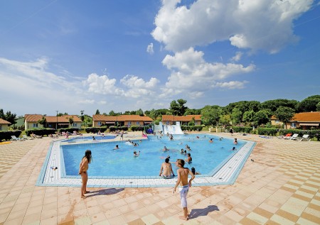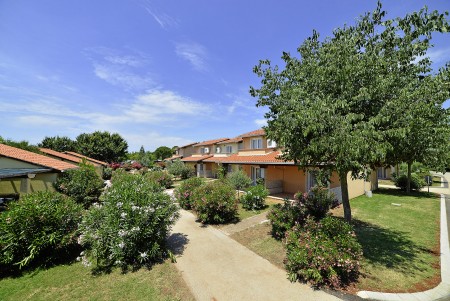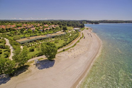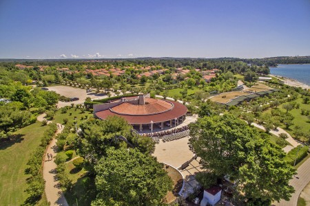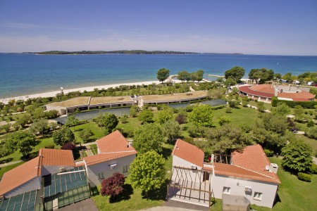 Prostrani odmarališni kompleks sastoji se od kampa, malog hotela, apartmana i mobilnih kućica. Smješten je oko 5 km od Pule, izravno uz more, s pogledom na prekrasan Nacionalni park Brijuni otoka.