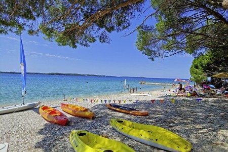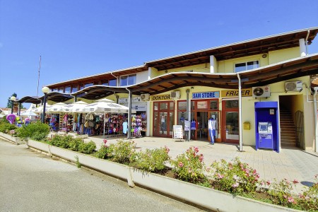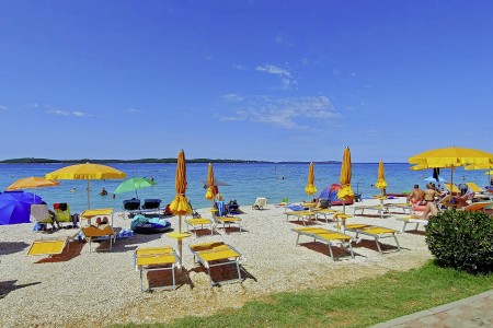 Plaža: Skoro 1 km dug uređeni šljunčani plaža nalazi se izravno uz objekt, udaljenost varira ovisno o smještaju, otprilike 50-500 m. Plaža je nagrađena "Plavom zastavom" koja označava čisto, uređeno priobalno područje s izvrsnom kvalitetom vode. Iznajmljivanje suncobrana i ležaljki, aquapark. Postoji i dio plaže prijateljski nastrojen prema psima.