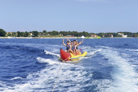 Sport: Odbojka na pijesku, nogomet, badminton, streličarstvo, adrenalinski park, park za trampolin, minigolf, aerobik, aquarobic, jet ski, Banana-Boats, pedaline, jedrenje na dasci, najam bicikala.