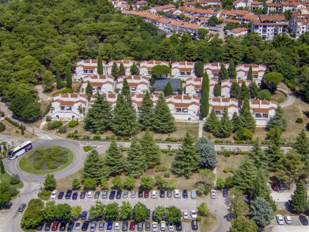 Redovi kuća u apartmanskom kompleksu izgrađenom u tipičnom mediteranskom stilu, sa 128 udobno uređenih stambenih jedinica, smješteni su na blagom brežuljku nasuprot Valamar Diamant Hotela.