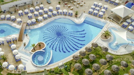 Uređaji: Sladkovodni bazen s ležaljkama i suncobranima (uključeno u cijenu, ograničeni broj), dječje igralište, parkiralište. Dodatne pogodnosti u resortu – restoran s show cooking-om, taverna, restoran à la carte „Oliva“ na plaži, lobby bar, frizerski salon, sauna, masaža, suvenirnica i dućan s novinama. Animirani programi za odrasle, Maro klub s animacijom za djecu različitih dobnih skupina, dječja disko. WiFi dostupan u javnim prostorima hotela, kao i u svim stambenim jedinicama (besplatno).