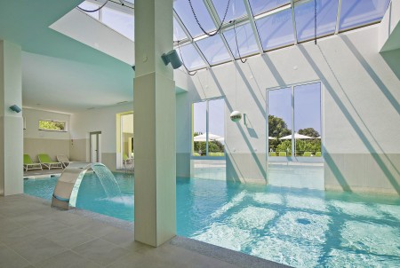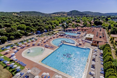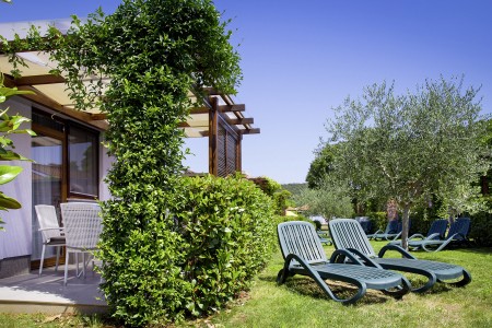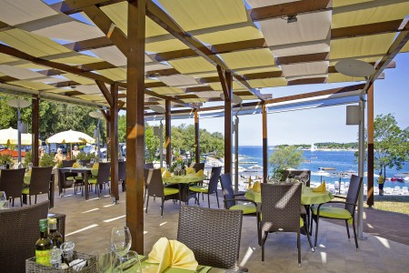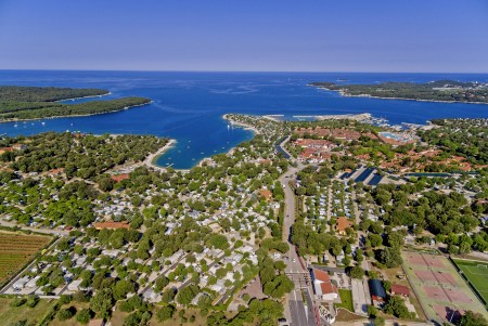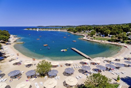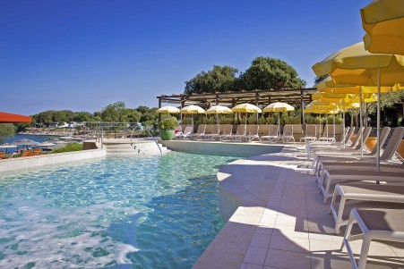 Uređaji: više restorana, snack barova, roštilja, pizzerijama, vlastita mala pivovara, supermarket, štandovi s voćem i povrćem, suvenirnica, kiosk s novinama, pošta s bankomatom, autopraonica, stanica za punjenje električnih vozila, frizerski salon, salon ljepote, zdravstveni centar, ljekarna, hitna pomoć, fitness centar, grijani slatkovodni bazen i dva whirlpoola, bazenski kompleks s morskom vodom s dječjim bazenom, suncobrani i ležaljke (uključeno), pool bar. Također postoji grijani slatkovodni bazen za unutarnju / vanjsku upotrebu (uz nadoplatu) s dva whirlpoola. Finska sauna i turska parna kupelj (uz nadoplatu). Animacijski program za odrasle i djecu, mini klub za različite dobi, večernji ples uz živu glazbu. Marina s 150 vezova, parkiralište (1 parkirno mjesto po stambenoj jedinici besplatno, za dodatna vozila naplaćuje se naknada). Internet kutak dostupan na recepciji (besplatno), WiFi-Internet dostupan u cijelom resortu (besplatno). Autobusna linija do Rovinja (od sredine svibnja do sredine rujna).