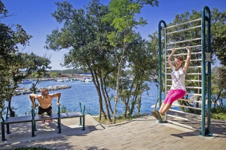 Sport: Teniski tereni, bocanje, avanturistički golf, stolni tenis, mini golf, razne staze za trčanje i brdski biciklizam, najam bicikala, nogomet, odbojka, košarka, rukomet, beach volley, gimnastika, park za vježbanje, aquarobic, jedrenje na dasci, najam SUP-a, čamaca, kajaka i pedalina, aquapark s vodenim toboganom.