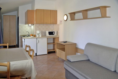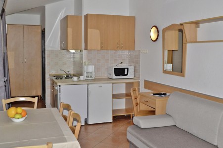 Apartman tipa VB za 2-4 osobe: otprilike 24 m², jedna dvokrevetna soba, dnevno-spavaća soba s kaučem na razvlačenje, kuhinjska niša s perilicom suđa i mikrovalnom pećnicom, blagovaonica, sef, SAT-TV, klima uređaj, tuš/WC, terasa s garniturom za sjedenje, dva ležaljke i suncobran.