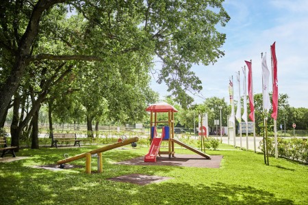 Uređaji: Buffet-restoran, pizzerija, brza hrana, sef na recepciji (uz nadoplatu). Animacijski program (krajem svibnja do početka rujna) s dnevnim i večernjim animacijama za odrasle i djecu, miniklub za djecu od 5 do 12 godina. Bazen s pitkom vodom s dječjim bazenom i ležaljkama (besplatno, ograničen broj). Parkiranje uz nadoplatu unutar ljetovališta (2 € po danu). Tijekom sezone u ljetovalištu ćete također pronaći tržnice s voćem i povrćem, suvenirnice, kioske, supermarket, razne trgovine i kafiće. Internet kutak i WiFi-Internet dostupni su na području recepcije (besplatno).