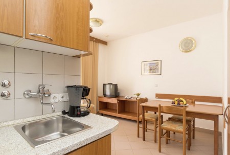 Apartman za 2-3 osobe: približno 30 m², dvokrevetna soba s dva pojedinačna kreveta, dnevno-spavaća soba s kaučem na razvlačenje, SAT-TV, telefon, kuhinjica i blagovaonica, kupaonica/WC i balkon ili terasa.