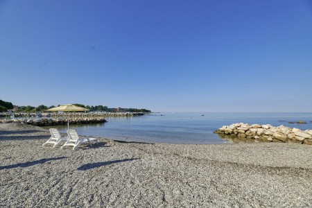 Plaža; Oko kompleksa proteže se slikovita stjenovita obala s kamenim platoima, no najpopularnija je umjetno oblikovana „Laguna“ s blago nagnutom šljunčanom plažom. Ležaljke i suncobrani uz nadoplatu. Ovisno o smještaju, plaža je udaljena 50–250 m.