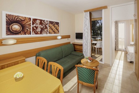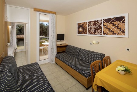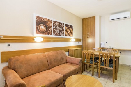 Apartman Superior za 2-4 osobe: ugodnih cca 28 m², na prvom ili drugom katu; jedna dvokrevetna soba, dnevno-spavaći prostor s dvije sofe na razvlačenje; klima-uređaj, SAT-TV, telefon, besplatan WiFi internet; kuhinjski kut s mikrovalnom pećnicom i kutkom za blagovanje; tuš/WC; balkon.