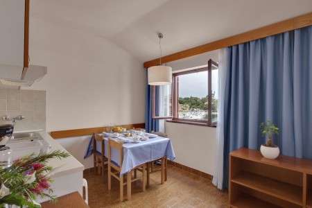 Standard apartman za 2-5 osobe: otprilike 50 m², spavaća soba s bračnim krevetom, dnevni boravak/soba za spavanje s prostorom za objedovanje i tri kauča na razvlačenje (190 x 90 cm), kuhinjska niša (aparat za kavu, hladnjak, ploča za kuhanje, mikrovalna pećnica), tuš/WC, telefon, WiFi internet (besplatno), LCD SAT-TV i klima uređaj. Balkon s pogledom na more.