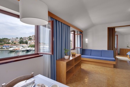 Superior apartman za 3-5 osobe: otprilike 51 m², spavaća soba s bračnim krevetom, spavaća soba s jednostrukim krevetom, dnevni boravak/soba za spavanje s prostorom za objedovanje i dva kauča na razvlačenje (190 x 90 cm), kuhinjska niša (aparat za kavu, hladnjak, ploča za kuhanje, mikrovalna pećnica), tuš/WC, telefon, WiFi internet (besplatno), LCD SAT-TV i klima uređaj. Balkon s pogledom na more.