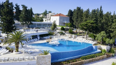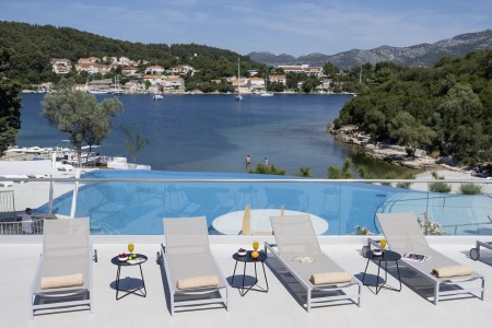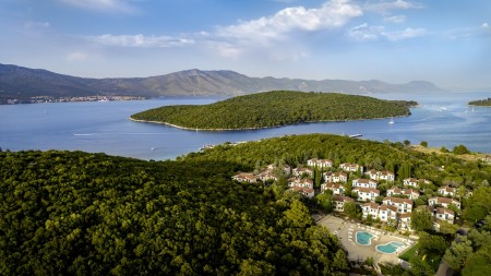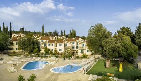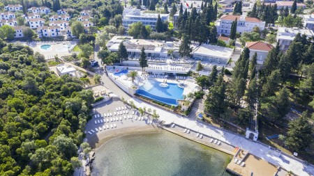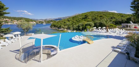 Smješten u mirnoj uvali izravno na šljunčanoj plaži, nalazi se odmaralište sastavljeno od hotela i 92 apartmana. Apartmani su podijeljeni u 23 kuće, svaka sa po četiri stambene jedinice. Pod nazivom „Aminess Port9 Residence“, očekuju Vas udobni i moderno uređeni apartmani s 4 zvjezdice u zelenom mediteranskom okruženju. Unutar resorta nalaze se brojni bazeni, novouređena plaža i brojni sportski i zabavni objekti. Staru gradsku jezgru Korčule, udaljenu oko 2 km, možete doći preko obalne promenade ili vrlo udobno taksijem-čamcem.
