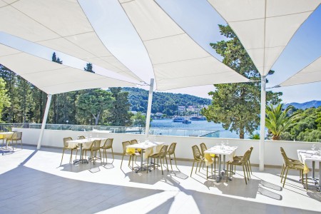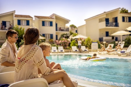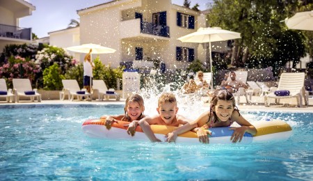Plaža: Stjenovita plaža i plaža s sitnim šljunkom s pijesčanim dijelovima, prostorima za ležanje, tavernom, roštilj-barom i pizzom/pasta-barom udaljeni su oko 100 m, ovisno o smještaju. Ležaljke i suncobrani dostupni su uz nadoplatu.
