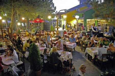 Uređaji: Na "Kalelargi" - pješačkoj zoni kompleksa - nalaze se restorani s terasama, pizzeria, slastičarnica, supermarket, pekarnica, taverna, aperitiv bar, kafić, butici, frizerski salon, ambulanta, razne trgovine s novinama i suvenirima. Na plaži se nalazi zabavni centar sa plesnom glazbom i animacijom. Animacija u Mini klubu (3-12 godina) i Teen klubu (13-15 godina), kao i dnevna i večernja animacija za odrasle. Amfiteatar, snack bar, koktel bar, kafić. U srpnju 2025. novi je i otprilike 2500 m² velik bazenski kompleks s više bazena, uključujući dječji bazen, dva vodena tobogana, vodenipark, restoran i bar uz bazen, najam ležaljki i suncobrana. Dječje igralište. Natkrivena parkirališta izvan ili na rubu kompleksa (besplatno). Marina za manje sportske brodove, vezovi uz naknadu. Dostupan WiFi internet (besplatno).