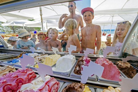 Plaža: Do plaže s pijeskom i šljunkom duge 2000 m - uglavnom s pješčanim morskim dnom i vrlo plitkim padom, stoga idealno za malu djecu - ovisno o smještaju, udaljenost je između 50 i 300 m. Najam ležaljki i suncobrana, snack bar i tobogan za vodu.
