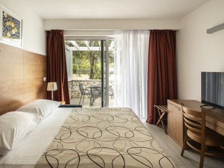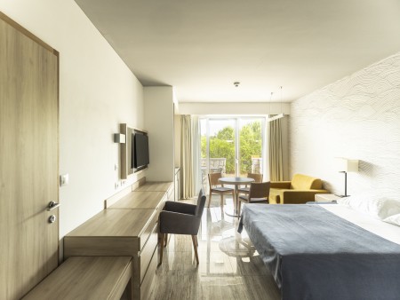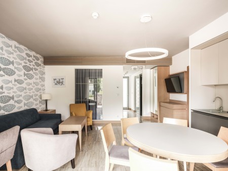 Apartman "Superior" za 2-4 osobe: otprilike 43 m², moderno opremljen, u prizemlju ili na katu, dvokrevetna soba, dnevni boravak sa sofom za spavanje za dvije osobe (160x200 cm), kuhinjski blok i blagovaonica, kupaonica ili tuš/WC, terasa ili balkon.