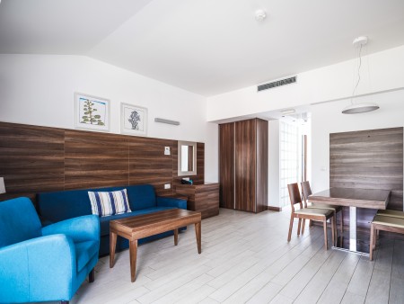 Apartman "Superior" za 4-6 osoba: otprilike 64 m², moderno opremljen, u prizemlju ili na katu, dvije spavaće sobe, dnevni boravak sa sofom za spavanje za dvije osobe (160x200 cm), kuhinjski blok i blagovaonica, dvije kupaonice, balkon ili terasa.