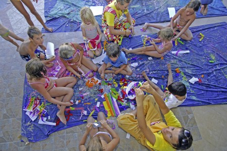Uređaji: Na "Kalelargi" - pješačkoj zoni kompleksa - nalaze se restorani s terasama, pizzerija, slastičarnica, supermarket, pekara, konoba, bar za aperitive, kafić, butici, frizerski salon, ambulanta, razne trgovine s časopisima i suvenirima. Na plaži se nalazi zabavni centar s plesnom glazbom i animacijom. Animacija u miniklubu (3-12 godina) i tinejdžerskom klubu (13-15 godina), kao i dnevna i večernja animacija za odrasle. Amfiteatar, snack bar, koktel bar, kafić. U srpnju 2025. novi bazenski kompleks veličine oko 2500 m² s više bazena, uključujući dječji bazen, dvije tobogane za vodu, Splashpark, restoran i bar pored bazena, najam ležaljki i suncobrana. Dječje igralište. Natkrivena parkirališna mjesta izvan odnosno na rubu kompleksa (besplatno). Marina za manje sportske brodove, veza uz nadoplatu. Dostupan WiFi internet (besplatno).