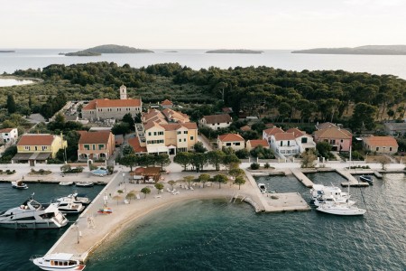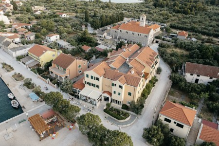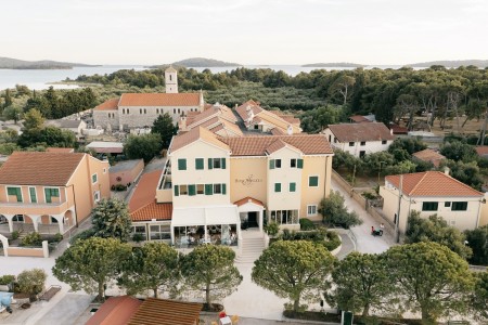 Sadržaji: Restoran, plaža bar, sobna usluga (uz naplatu), grijani unutarnji bazen, fitness studio. Uz hotel se nalazi marina za do 25 brodova. Besplatno parkiranje u Brodarici na kopnu, besplatan prijevoz brodom od kopna do hotela i obrnuto u vremenu od 08:00 do 22:00 sata. Stoga možete doći do kopna i tijekom svog boravka, na primjer, kako biste išli na izlete.