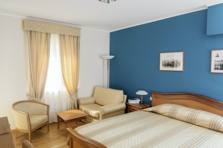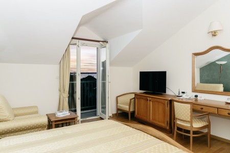 Dvokrevetna soba: otprilike 27 m², veliki bračni krevet (180 x 200 cm), također dostupno s balkonom s pogledom na otok.