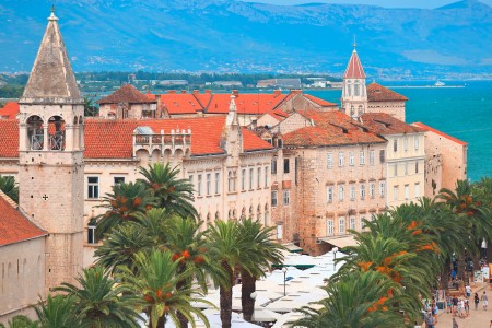 Jedan od najslikovitijih starih gradova u Dalmaciji: Trogir, smješten oko 20 km sjeverno od Splita, u blizini zračne luke. Stari grad nalazi se na malom otočiću koji je mostom povezan s kopnom. S ovog otoka vodi most na otok Čiovo, koji se nalazi ispred Trogira. Povijesna jezgra Trogira uvrštena je na popis svjetske baštine UNESCO-a – i to s razlogom. Kroz uske uličice, drevne trgove i raskošne palače osjeća se duh stoljeća, a svaki kutak priča svoju priču. Grad su osnovali grčki kolonisti u 3. stoljeću prije Krista, a najveći procvat doživio je u srednjem vijeku. Danas je Trogir savršena kombinacija kulturne baštine i opuštenog mediteranskog načina života. Najpoznatiji simbol grada je katedrala sv. Lovre s čuvenim Radovanovim portalom – remek-djelom romaničke skulpture. Posebno se ističu i kula Kamerlengo, smještena uz more, koja ljeti postaje pozornica na otvorenom, te kula sv. Marka, nekada dio obrambenog sustava, a danas mjesto kulturnih događanja i izložbi. Šetnja trogirskom rivom u ljetnim mjesecima pravi je užitak – ispunjena kafićima, restoranima i brodicama, idealna je za večernje opuštanje uz miris mora i šum valova. Otok Čiovo, povezan mostom s povijesnom jezgrom, nudi brojne plaže i uvale za kupanje, a istovremeno ostaje dovoljno blizu da zadrži osjećaj povezanosti s gradom. Trogir je i izvrsna polazišna točka za izlete – bilo da želite posjetiti Split, Nacionalni park Krka, ploviti prema otocima srednje Dalmacije ili istraživati zaleđe. Iz luke u Trogiru polaze i naši brodovi na 7-dnevna krstarenja Jadranom, savršen način da doživite Hrvatsku s morske strane –opušteno, autentično i drugačije.