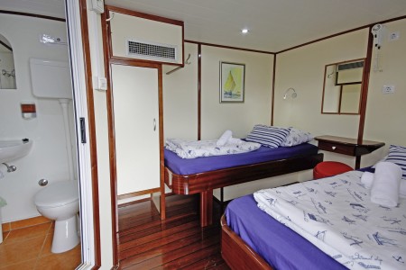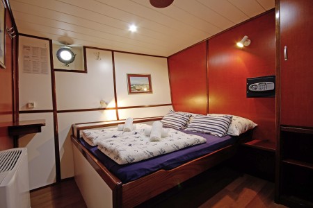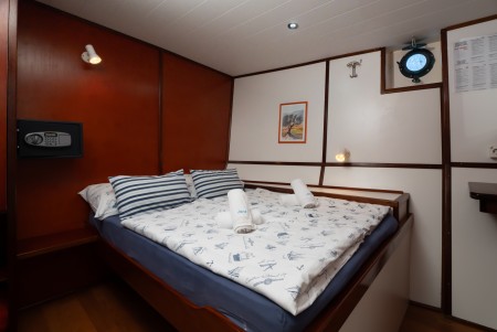 Glavna paluba: 1 dvokrevetna kabina s odvojenim krevetima, 2 dvokrevetne kabine s francuskim ležajem.