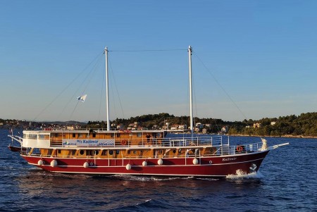 Izvorno izgrađen 1946. godine, sva su nadgrađa uklonjena, a trup potpuno izdubljen u zimi 1999./2000. Obitelj Šango iz Privlake kod Zadra htjela je napraviti potpuno "novi“ motorni jedrenjak. Marljivost i trud su se isplatili, jer je Kažimir postao ne samo najveći drveni brod u tadašnjoj našoj floti, već i prvi koji je imao kabine isključivo na palubi. Kapetan Kaže odavno je u zasluženoj mirovini, a zapovjedništvo je prepustio sinu Kaži (zvanom Braco) koji sada sa suprugom Zdenkom i sinom Renatom upravlja Kažimirom. Njih trojica posljednjih su zima uložila puno rada, marljivosti i novca kako bi osvježili brod. To će odmah primijetiti svaki gost koji je već bio na Kažimiru – bilo u salonu, kabini ili na palubi. Za sezonu 2020. obnovljena je oplata cijelog trupa – ovom prilikom Kažimir je dobio i novi izgled u boji. Inače, Renato je već nekoliko godina za kormilom kao kapetan.