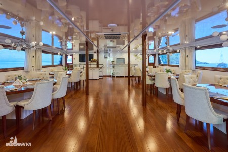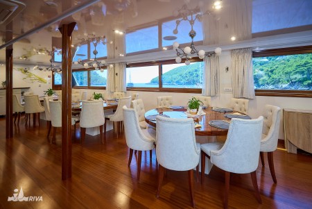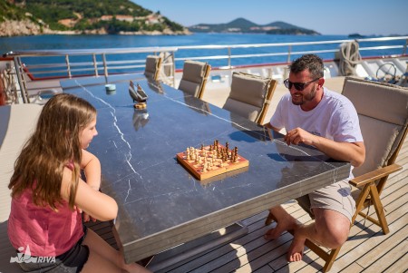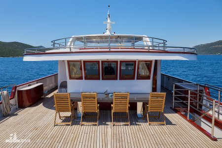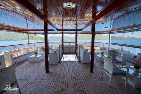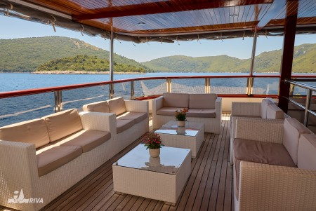 Ostalo: Paluba za sunčanje (220 m²) sa 40 ležaljki, platforma za kupanje i vanjski tuševi na krmi. Klimatizirani salon za 40 osoba na gornjoj palubi, udobne sjedeće garniture za cca. 40 osoba u natkrivenom dijelu gornje palube iza salona, koji se ovisno o vremenu može zatvoriti ceradama. Svakodnevno čišćenje kabina i mijenjanje ručnika.