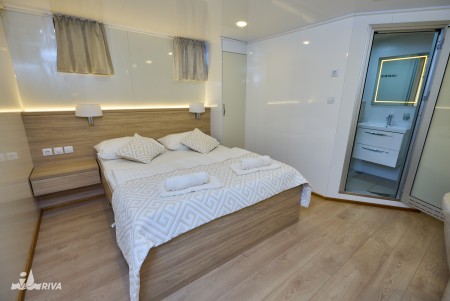 Glavna paluba: 6 dvokrevetnih kabina s odvojenim ležajima, 5 kabina s francuskim ležajem.