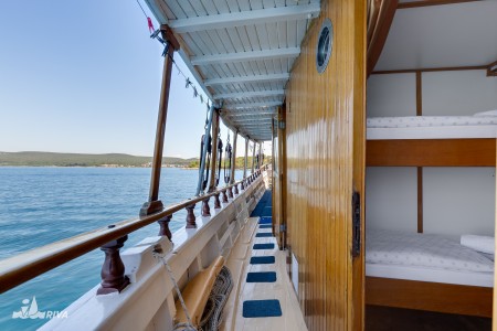 Gornja paluba: 2 dvokrevetne kabine sa krevetima na kat.