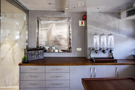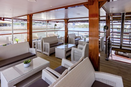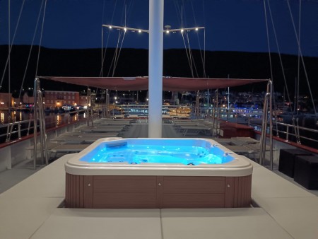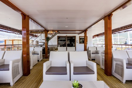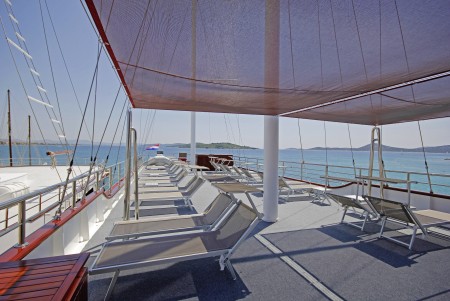 Ostalo: Paluba za sunčanje (250 m²) sa 37 ležaljki i jacuzzijem, platforma za kupanje i vanjski tuševi na krmi. Klimatizirani salon za 37 osoba na gornjoj palubi, udobne sjedeće garniture za cca. 20 osoba u natkrivenom lounge dijelu gornje palube iza salona, koji se ovisno o vremenu može zatvoriti ceradama. Svakodnevno čišćenje kabina i mijenjanje ručnika.